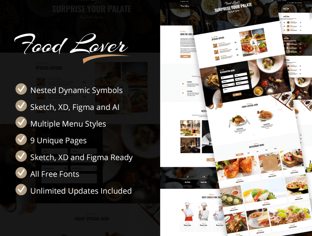 Food Lover Restaurant Theme In Sketch, XD, Illustrator and Figma